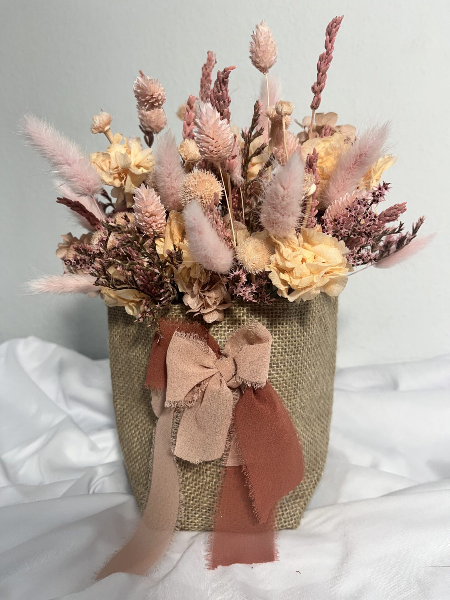 La Cesta Baby es una encantadora pieza confeccionada en tela de yute, pensada para aportar calidez, naturalidad y ternura a cualquier espacio. Con unas medidas de 28×23 cm, su tamaño es ideal para decorar habitaciones infantiles, regalar en nacimientos o usar como base para composiciones florales o detalles personalizados.