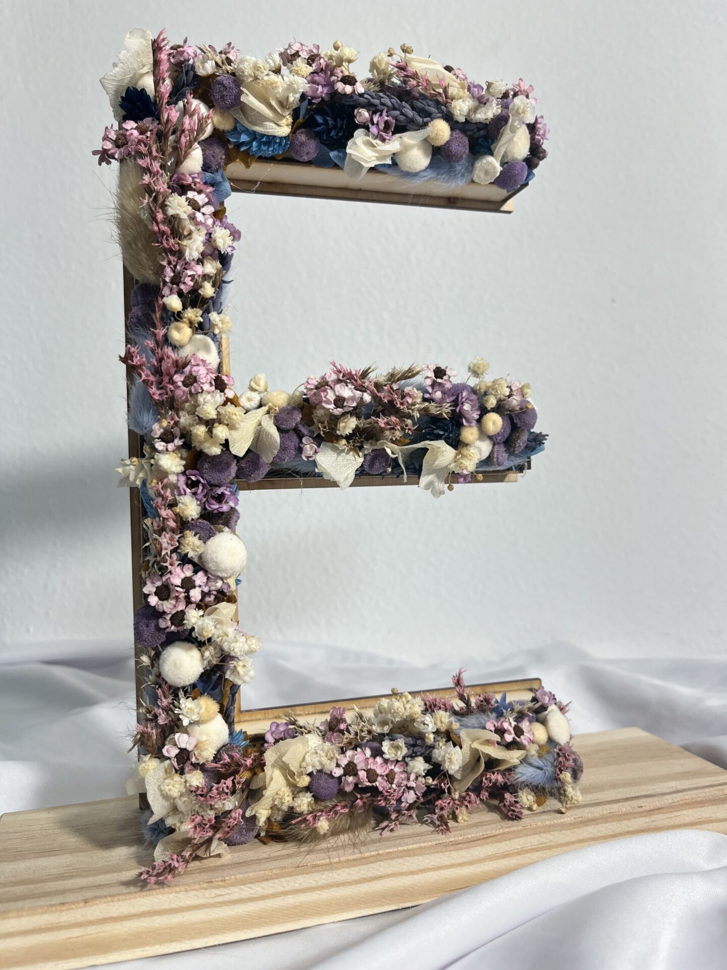 Letra E en Madera, una inicial que florece con estilo propio.