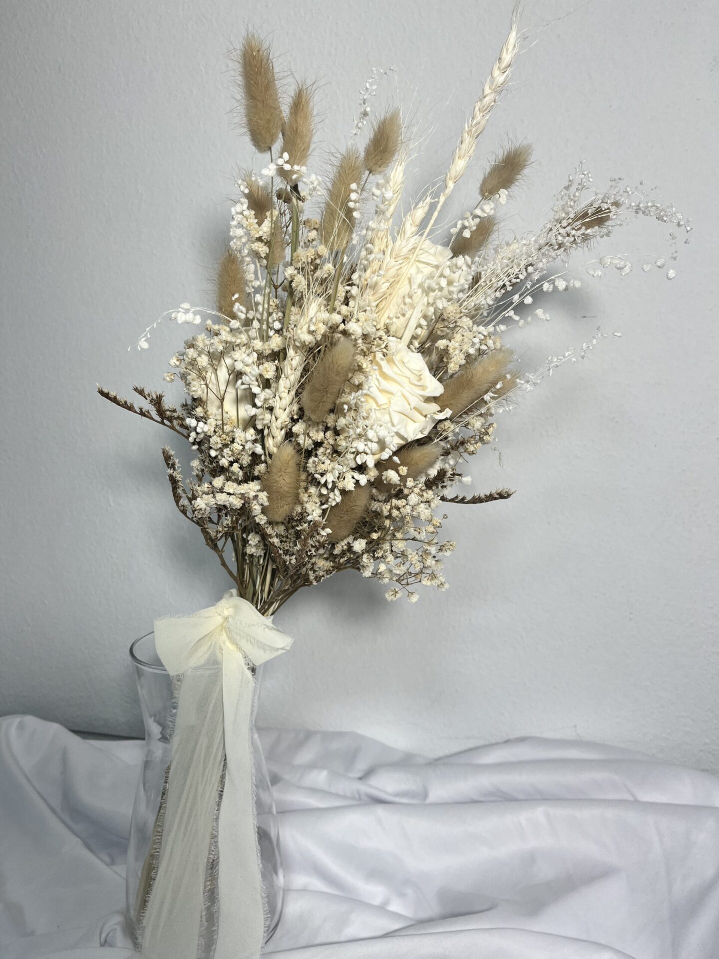 • Medidas: 59 x 26 cm (alto x ancho), un tamaño perfecto para novias que desean un ramo elegante y discreto.