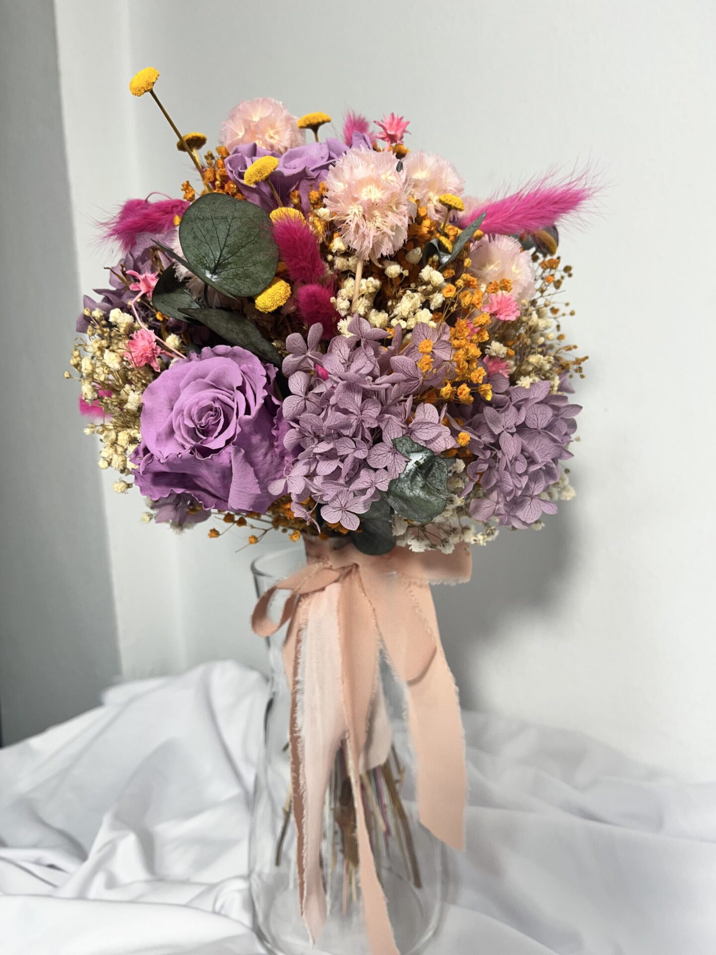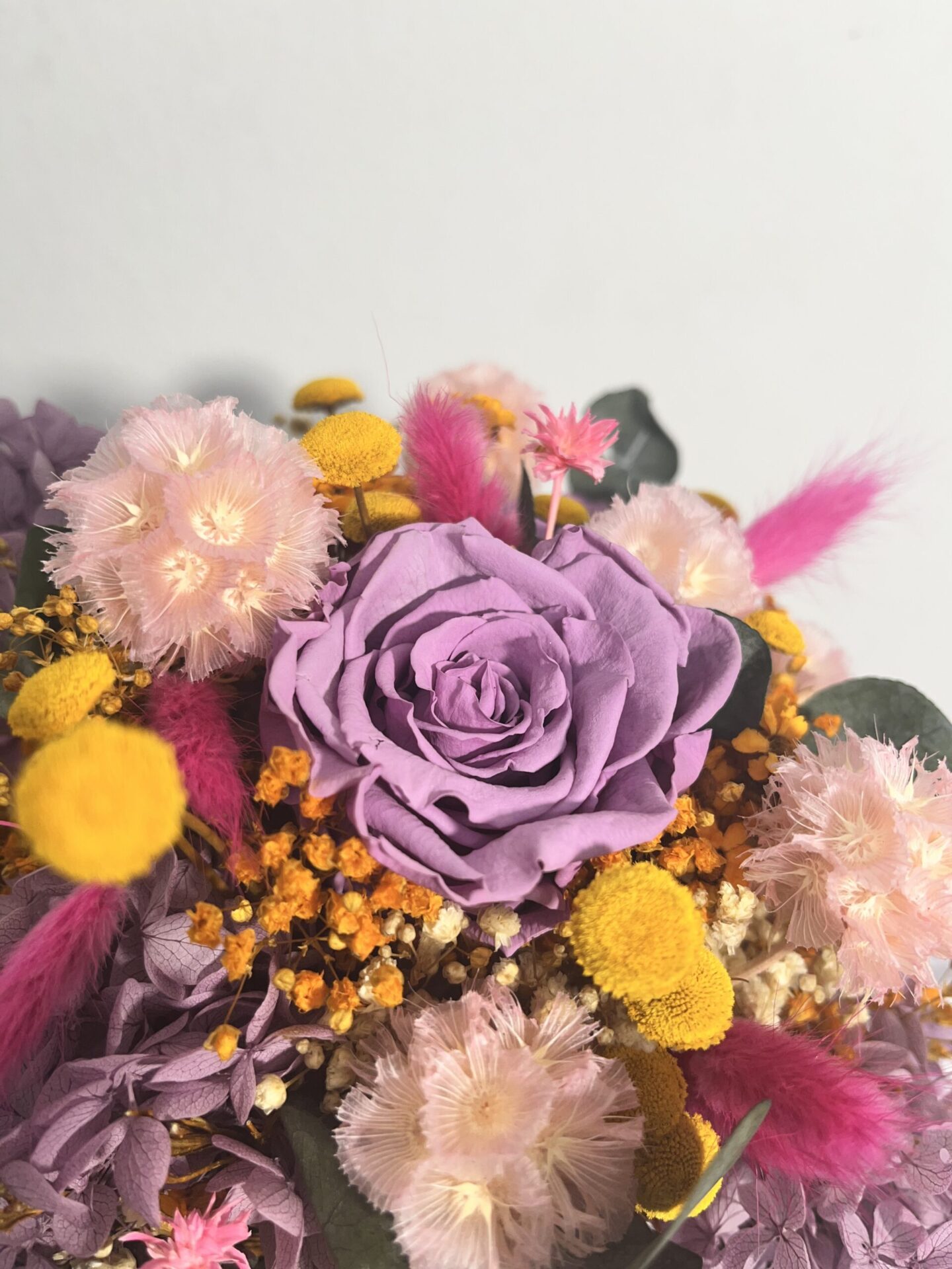 • Durabilidad: Flores preservadas que conservan su belleza durante todo el día, acompañándote en cada momento especial.
