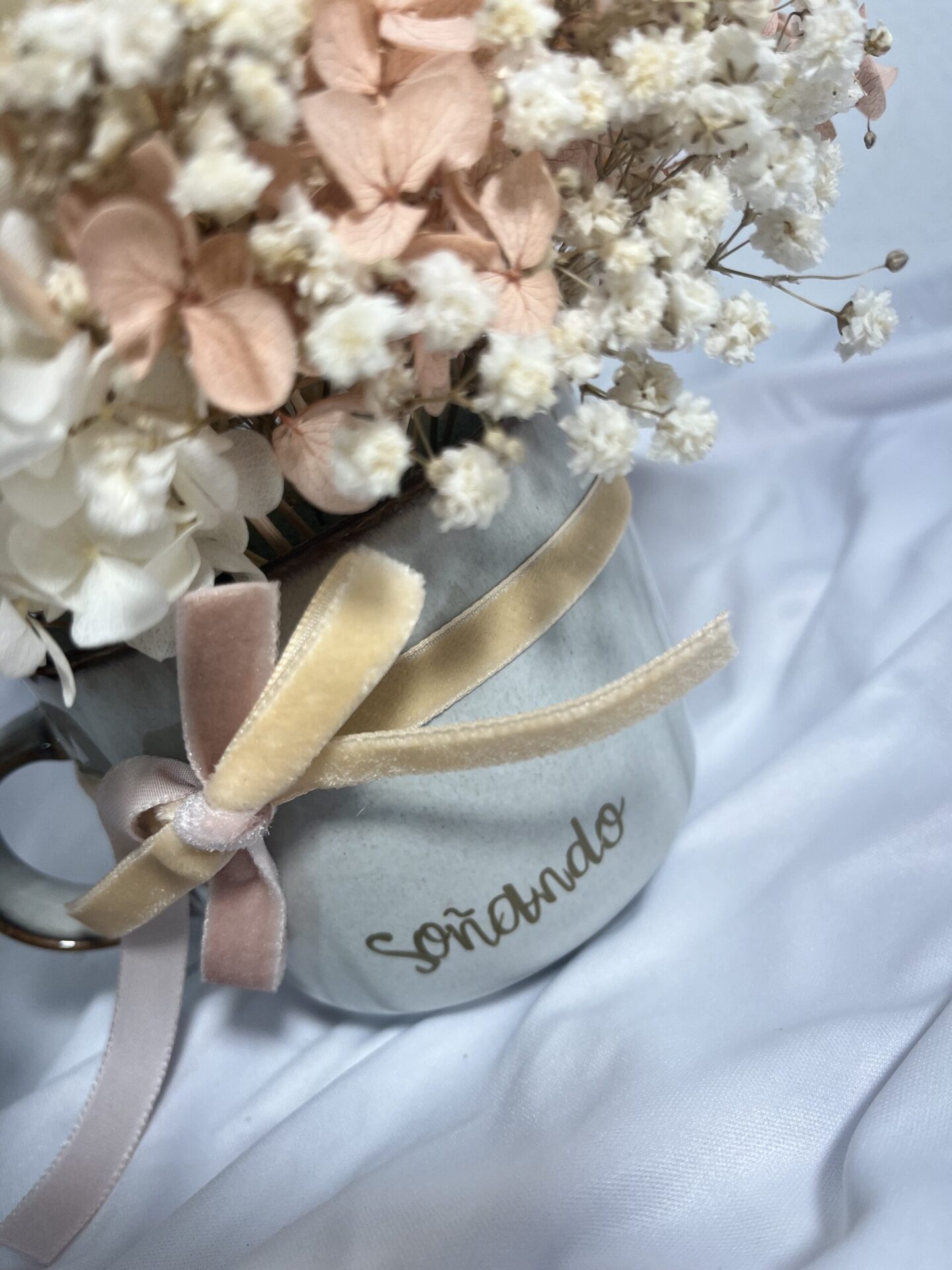 LaTaza Decorativa Soñando es una expresión de esperanza, inspiración y serenidad. Elaborado con flores preservadas cuidadosamente seleccionadas, este ramo destaca por su combinación de tonos suaves y etéreos, evocando la magia de un sueño hecho realidad.